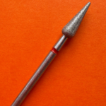 Pear Bit (Hruška) Priemer 4 mm, Dĺžka 12 mm – červený prúžok, diamantový nadstavec na manikúru